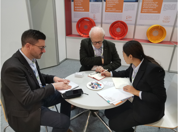 展會期間,展位參觀者絡繹不絕,公司接待了來自德國、西班牙、意大利、英國、法國、荷蘭等國家的新老客戶。我司展出的自主設計開發的滾壓鋁輪轂、高品質農機輪輞由于其獨特的工藝及精美的外觀,給客戶留下了深刻的印象,受到眾多海外買家的關注與青睞。通過現場銷售及工程人員對產品各類特點及優勢的講解,客戶對于風馳的產品有了更進一步的了解,不僅有效的推廣了風馳品牌,使得更多農機領域經銷商,廠商認識風馳的產品,建立合作模式。同時,借助此次機會,公司還對歐洲農機領域進行了解和分析,為進一步擴大歐洲市場提供指向標。