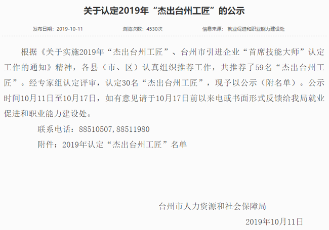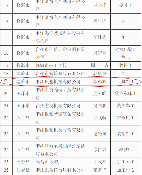 我司根據(jù)《關(guān)于實(shí)施2019年“杰出臺(tái)州工匠”、臺(tái)州市引進(jìn)企業(yè)“首席技能大師”認(rèn)定工作》的通知要求,通過(guò)公司推薦,資格初審,經(jīng)專家組認(rèn)定評(píng)審,我司研發(fā)中心工程師李軍輝成功順利入選被評(píng)選為“杰出臺(tái)州工匠”,并在網(wǎng)上予以公示,符合公司的價(jià)值觀“客戶為先、誠(chéng)信負(fù)責(zé)、團(tuán)隊(duì)合作、務(wù)實(shí)創(chuàng)新”精神。