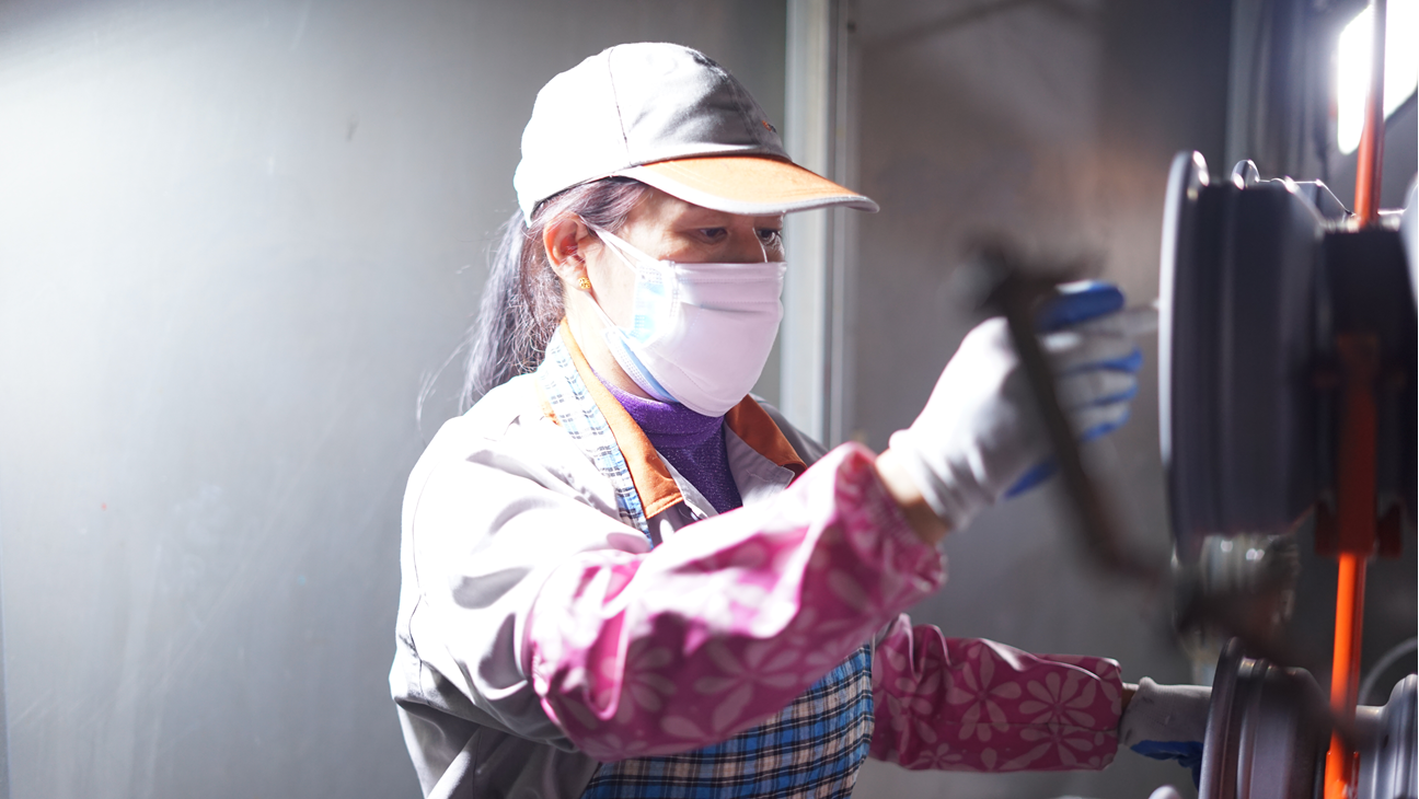 “剛開始進入崗位的時候,還是有些不太適應,只能強迫自己融入團隊,不斷提升自己技能,才能做好這個崗位。我在打磨產品的過程當中,也慢慢發現只有精益求精打磨出來的產品才能夠使下一道工序減少不良的產生,也給其他工序帶來一定的幫助,自己也感到很快樂。特別是在工作時幫助他人不斷提高工作質量,不斷專研打磨技巧,怎么樣用最快捷最方便的打磨技巧打磨產品,感覺到自己的進步,于是慢慢的就喜歡上這份工作。”這是吳愛芳這份工作的簡單總結。