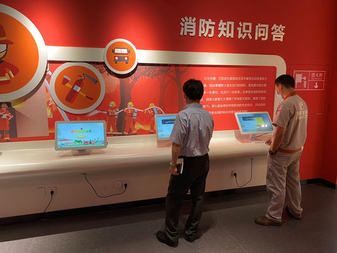 首先,由講解員帶領著各位參觀了基地現場,著重講解火災危害、應急措施及如何預防等安全消防知識,同時著重講解必須要知道四會、四個能力、五個第一基本概念。
