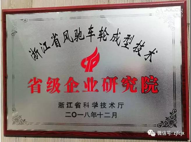 2018年12月,榮獲浙江省科學技術廳頒發的“省級企業研究院”。